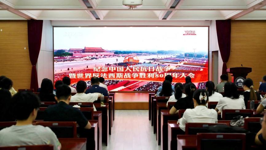9月3日上午,纪念中国人民抗日战争暨世界反法西斯战争胜利80周年大会隆重举行,WilliamHill官方网站党委书记王三礼、院长于亭等院领导、全体行政人员、教师党支部书记、研究生会党员骨干及全体2025级研究生新生共同集中观看直播。这场观礼作为研究生新生入学教育的首场活动,旨在引导同学们铭记历史、缅怀先烈、珍爱和平、开创未来,在回望峥嵘岁月中厚植家国情怀,在弘扬伟大抗战精神中勇担大任、不负韶华。