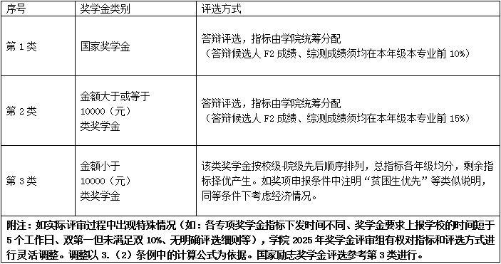 (2)按照奖金额度与学工部对奖学金评选的要求,将奖学金分为三类,分别进行院级评审,确定最终公示名单。