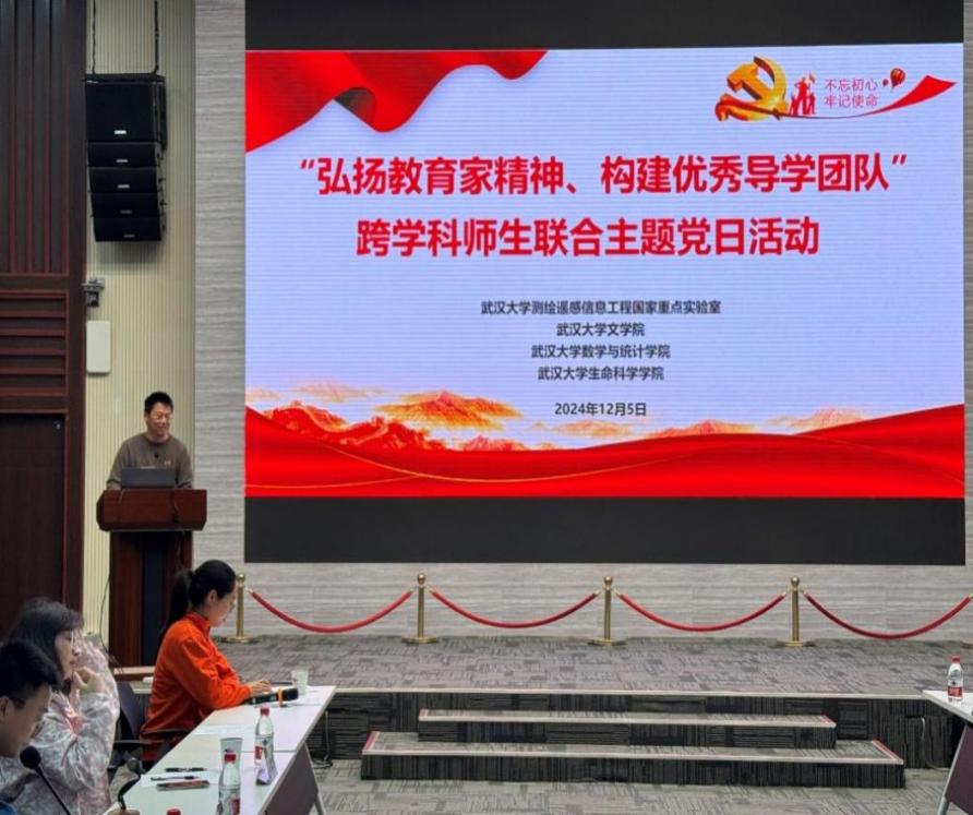 12月5日下午,“弘扬教育家精神 构建优秀导学团队”跨学科师生党支部共建活动在信息学部星湖实验大楼举行,WilliamHill官方网站古籍整理和汉语言文字学教师党支部、2023级博士党支部、2022级硕士第三党支部、本科生第二党支部党员代表联合数学与统计学院学生党支部、生命科学学院研究生党支部开展共建,活动得到测绘遥感信息工程国家重点实验室大力支持,重点实验室、数学与统计学院部分领导、老师参与此次活动。