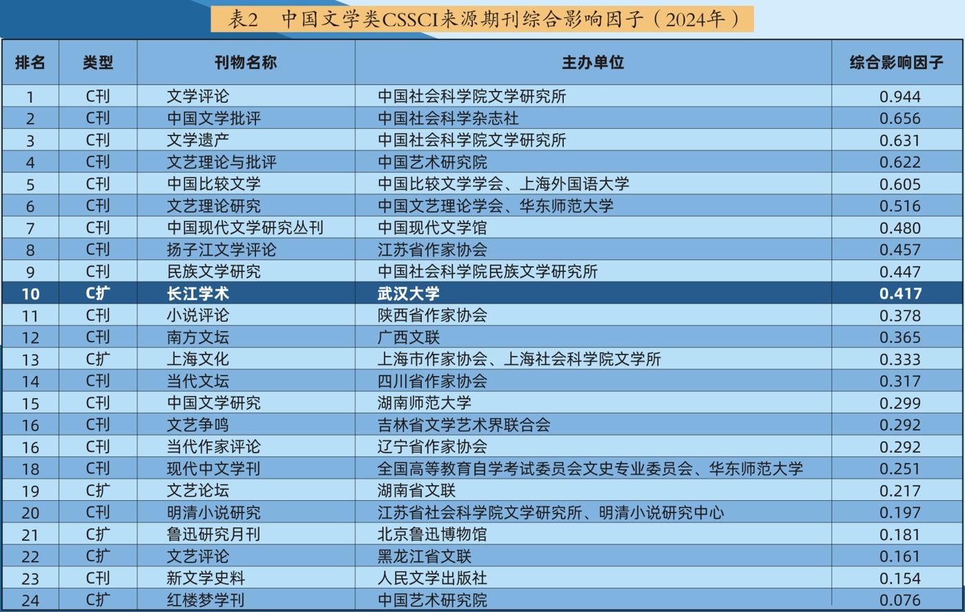 根据中国科学文献计量评价研究中心近日发布的《中国学术期刊影响因子年报》(2024年版),《长江学术》复合影响因子0.594、综合影响因子0.417,分别比上一年提升0.120、0.112。