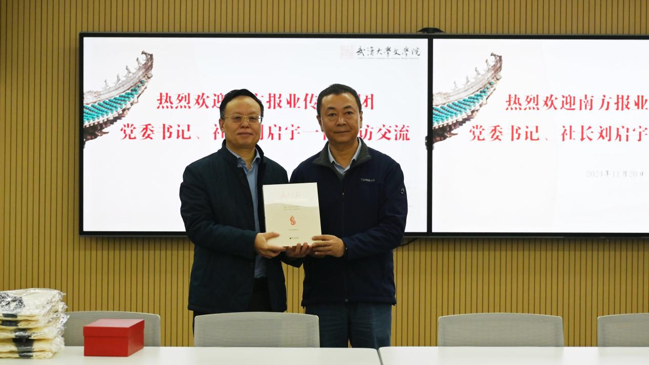 随后,刘启宇向学院赠送了南方日报创刊75周年主题图书。