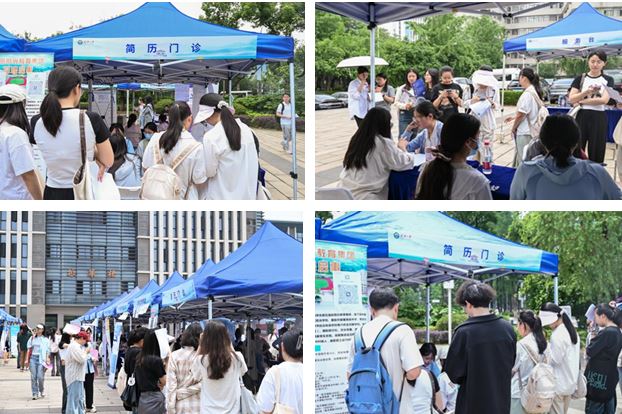 此外,招聘会主办方还设立了“简历门诊”展台,辅导员老师和学工助理为学生提供了一对一简历优化服务,同学们纷纷涌向展台希望得到切实有效的简历修改建议。